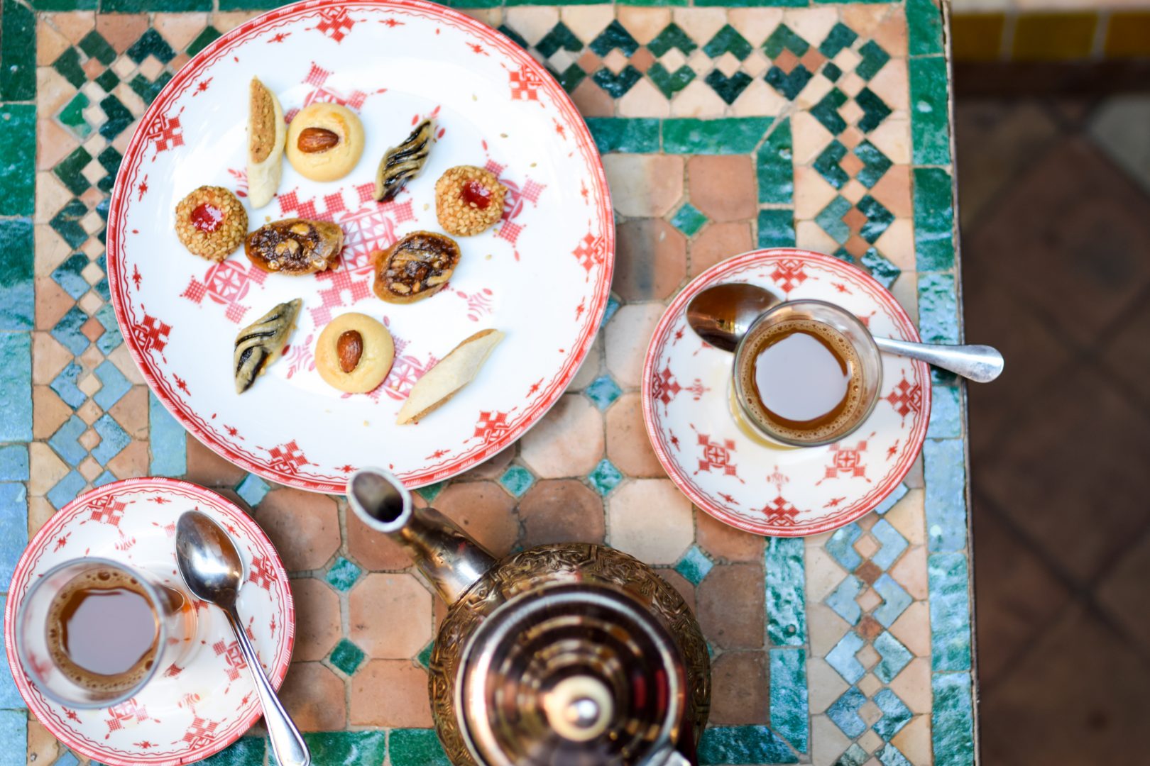 Wow. I had never experienced a Hammam before, and this was definitely a highlight of the trip. If you don’t know what a Hammam is, reading up is a good place to start. A Hammam is a steam room, similar to a Turkish bath, where Moroccans venture often to cleanse themselves. We spent an afternoon at the Hammam at our hotel, and it was AMAZING. We were cleansed, covered in clay, cleansed, covered in scrub, exfoliated vigorously with a porous glove, covered in oil, cleansed, and then dried off. It was pretty darn gross to see how much dead skin fell off of us after the scrub, but all I can say is that it is 100% worth the experience. We both were glowing afterward and felt amazing. Also, now I know why Moroccan women have such incredible skin! The oils, scrubs, and rinses leave you hydrated, moisturized, and glowing. Do not miss out on a Hammam experience, especially in Morocco! Or the fresh tea and cookies that are served alongside.
