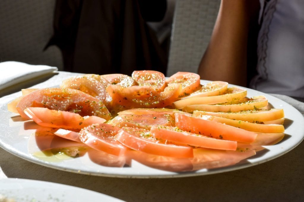 All of these beach-side restaurants look the same on the outside and have very similar menus on the inside. Hubbs enjoyed fried calamari, fresh bread and butter, and a cold glass of sangria. I enjoyed a plate of sliced tomatoes soaked in garlic and olive oil and a cold sangria as well. These were the perfect mid-afternoon snacks and gave us enough momentum to keep walking. So don’t be sketched out by these side spaces; they are filled with authentic seafood bites and veggie meals too!