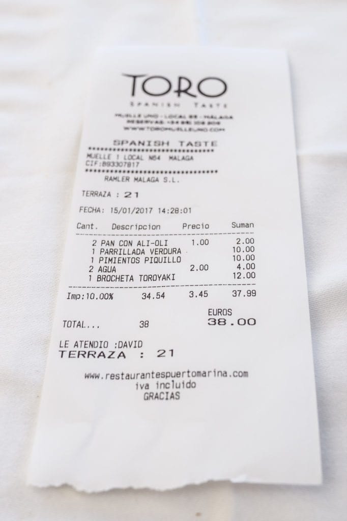 For our last dinner in Málaga, we headed to El Toro. This restaurant in ranked #35 out of 1,700 restaurants in Málaga! We were seated in the outside area near the heaters with the water as our view. We enjoyed the bread, butter, and olives as our first plate. For our second plate, I enjoyed the grilled veggies, and he ordered a variety of seafood. This was hubby’s absolute favorite meal we had in Málaga. The service was exceptional, the food was flavorful and fantastic, and the weather was the cherry on top. If you are looking to make a reservation anywhere in Málaga, please do not miss this space!