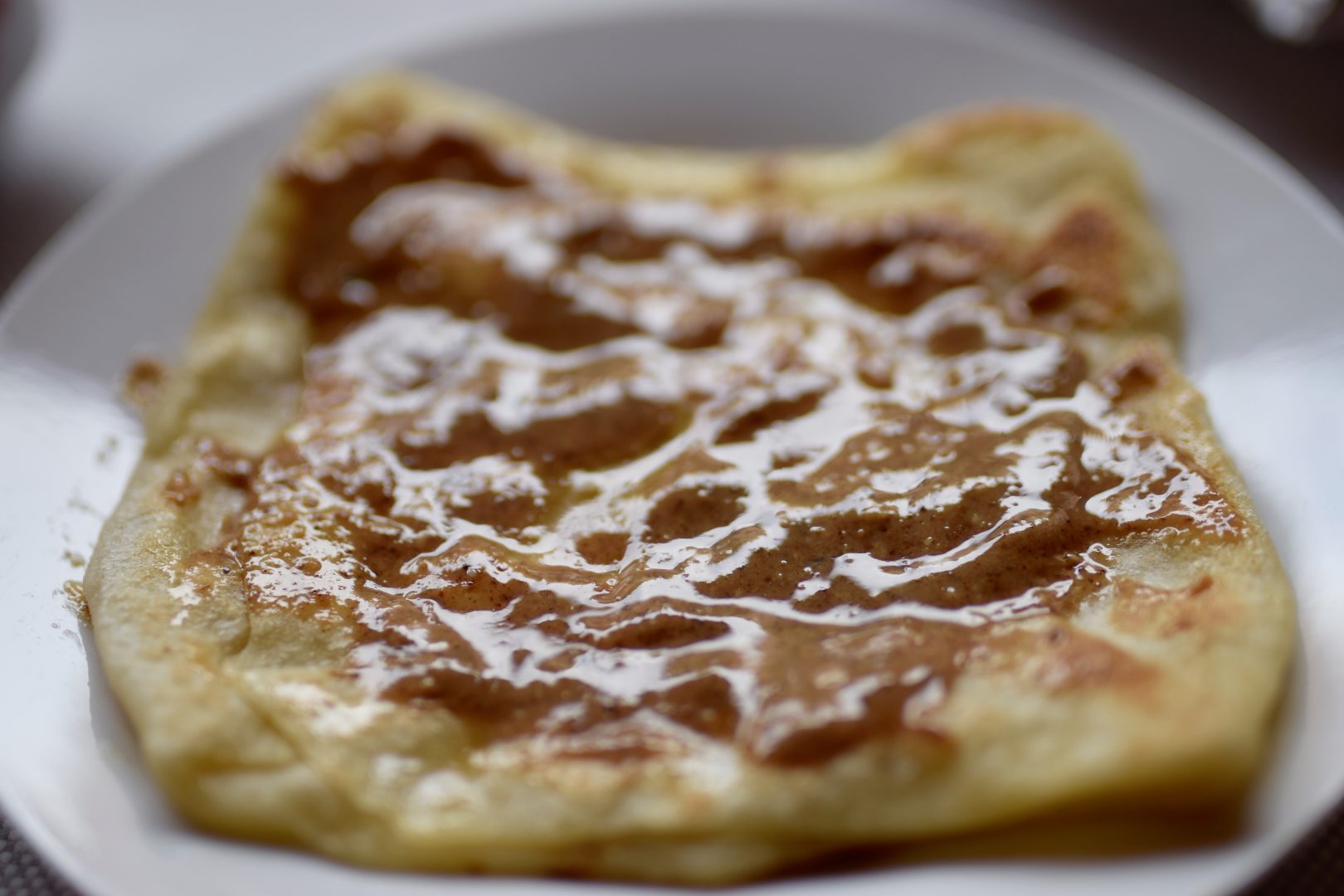- Cover the pancake with honey and almond butter.