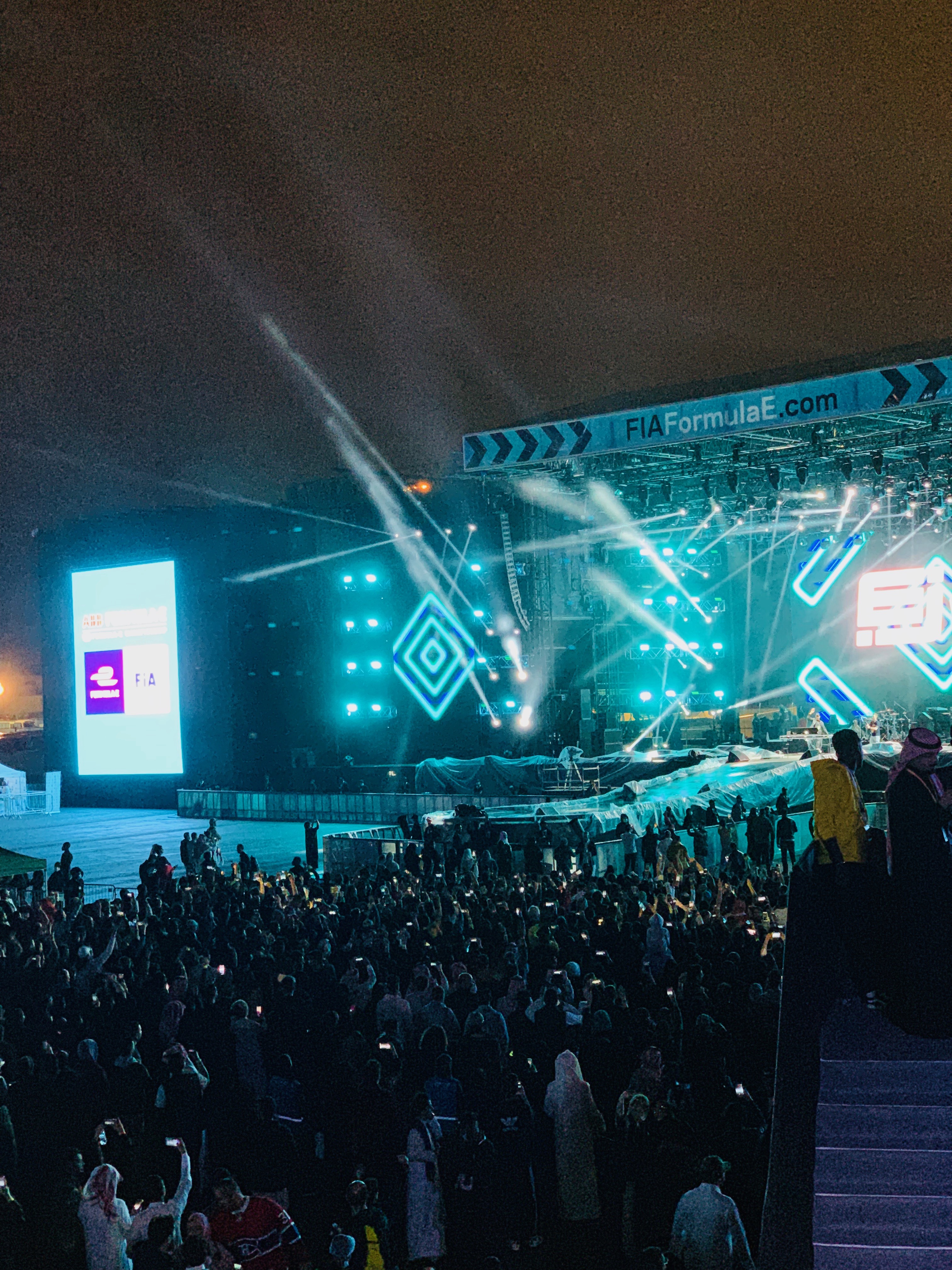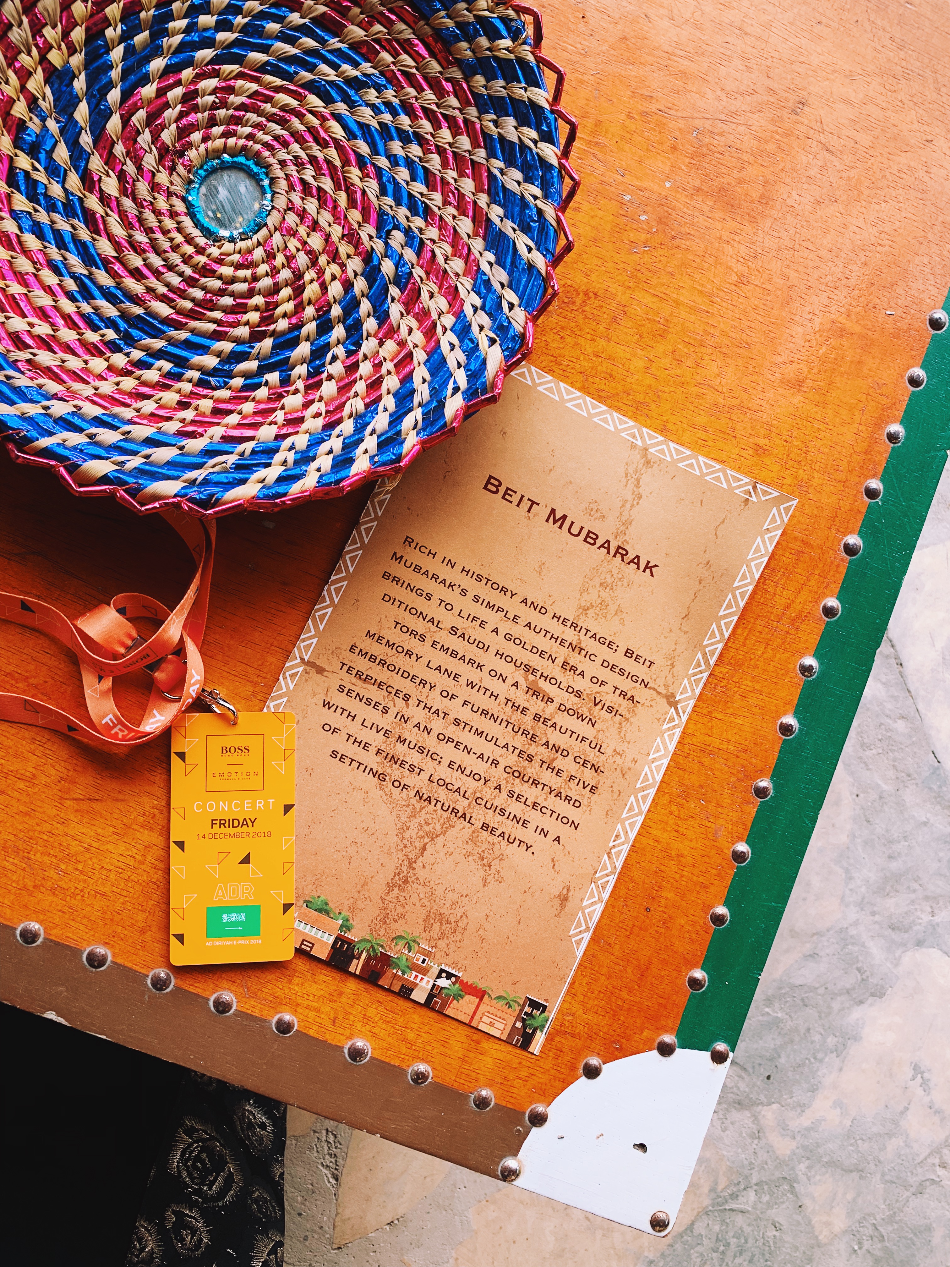 If you’re not familiar with Formula E, it is similar to Formula One racing except the racecars are electric. It is three days of fun, with live music from international artists, entertainment, cultural activities, and riveting city street racing. So needless to say, we were stoked to check it out! What did I wear? So, they gifted me with an abaya to wear that day. It was this beautiful black and gold embroidered abaya. And then instead of wearing a headscarf, I wore my fair-trade Raven and Lily felt hat. Underneath the abaya, I wore a white jumpsuit, a long, cream blouse, Kendra Scott earrings, and a Claire Murray scarf.