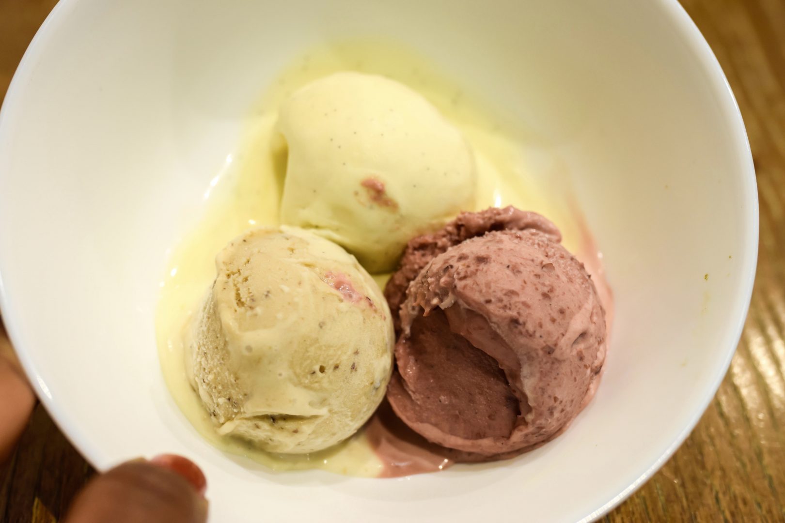 At this point, I really didn’t think I had any space for dessert. But as usual, dessert trumped logic. Philip encouraged us to get the homemade ice cream, so we did. We had scoops of vanilla, cherry, and mince pie (4.50). The vanilla and cherry were our favorites. Homemade ice cream is kind of a big deal. I tried making homemade lavender ice cream once…bad idea. I wish I’d had space to try the blackcurrant and custard donut, which looked absolutely divine, but there was no way I could fit any more food in. Thankfully, I plan on heading back there soon for one of their quiz nights, so I donut have to worry about that (pun intended).