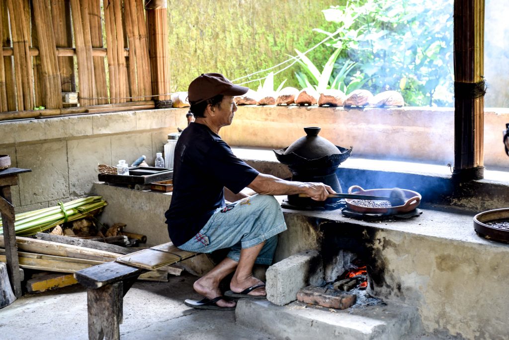 The reason coffee is created this way is that coffee producers believe that the process improves coffee through two mechanisms: selection and digestion. “The civet eats the cherries for the fleshy pulp, then in the digestive tract, fermentation occurs. The civet’s protease enzymes seep into the beans, making shorter peptides and more free amino acids. Passing through a civet’s intestines the cherries are then defecated with other fecal matter and collected.” We saw the luwaks and the men roasting the beans, and then it was time to try some.