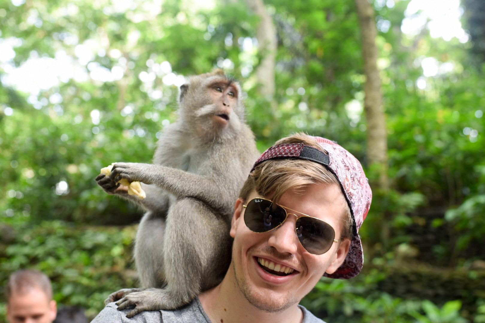 The monkey forest was a place I wasn’t super keen on going to. I’ve seen monkeys before—in fact, monkeys are everywhere at many of the temples in South India. One actually attacked my brother! So I wasn’t too excited about this. But all of that changed when my husband bought a small bunch of bananas, and these monkeys started crawling all over him for them. They were so darn cute! There’s something a little creepy about them, but this was such an interesting and educating experience. It is not like a zoo where you’re a safe distance away from these animals. They are right there; they’re following you, watching you—especially if you have food. Now I understand why this place is such a signature of Ubud.